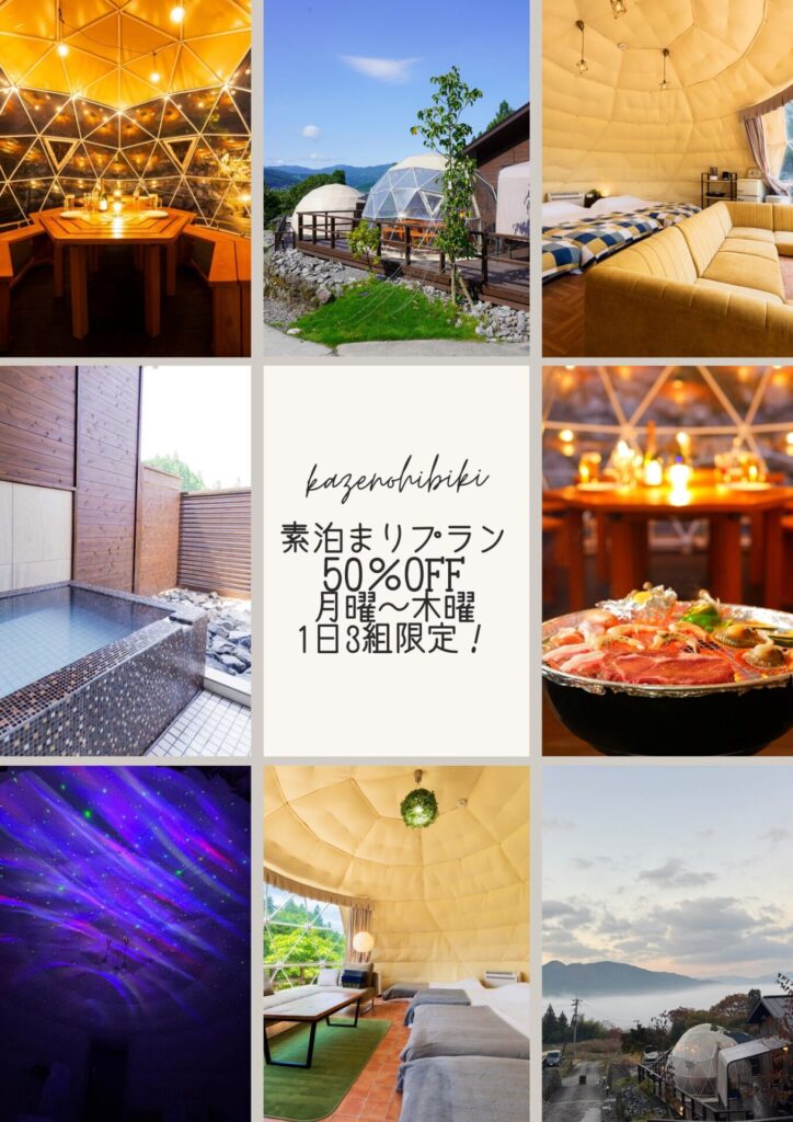 大自然に囲まれた秘境の地で、源泉かけ流しのプライベート温泉に癒され、ステーキBBQを楽しみ、ドームテントでおくつろぎいただけます。