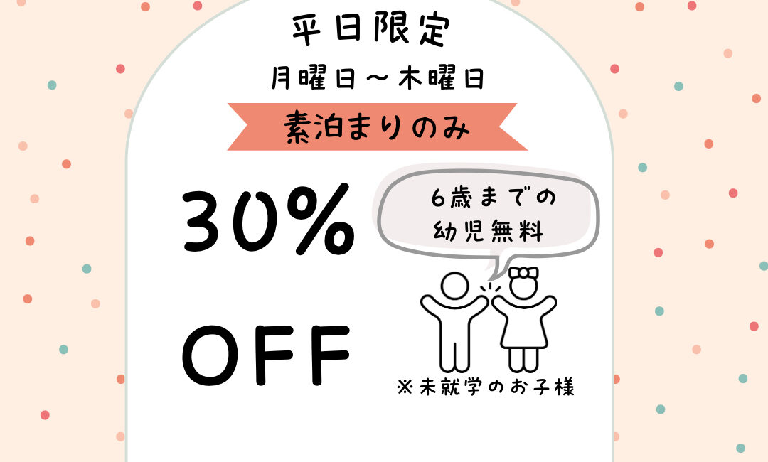 ☆素泊まり30%OFF☆月~木曜日・1日3組限定!